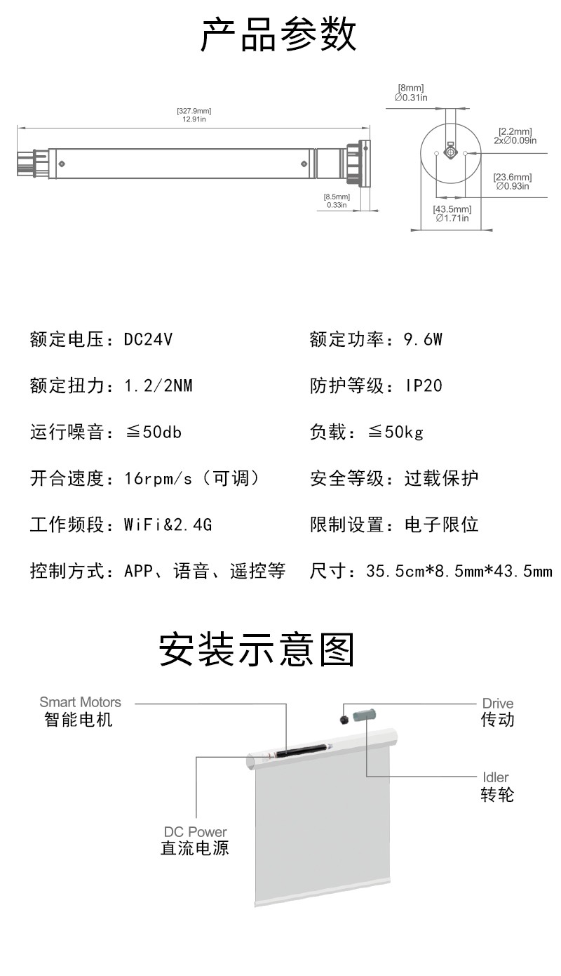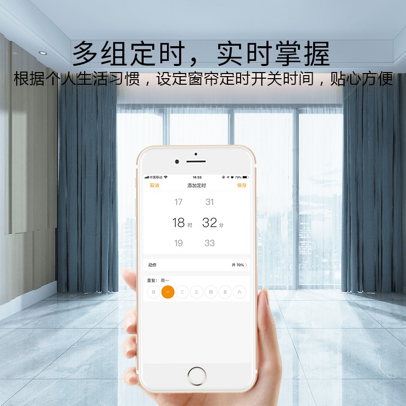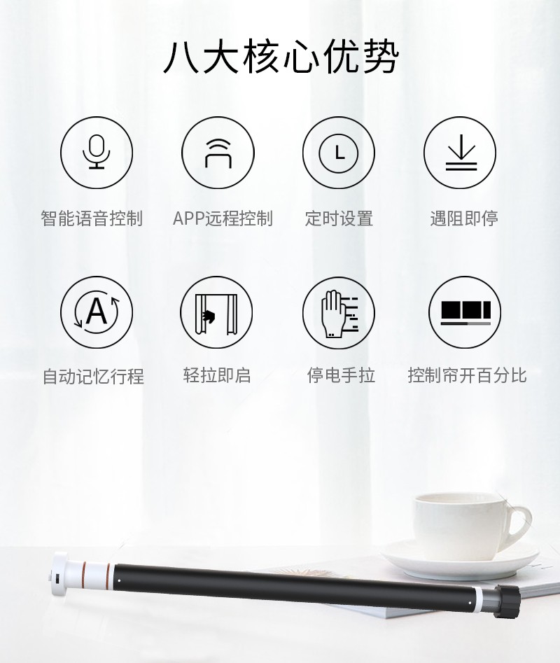 此產品適用于卷簾、柔紗簾、香格里拉簾,改變傳統窗簾手動拉升,調節遮光的方式,通過語音控制、手機APP控制、遙控控制等手段,讓您悅享智能生活帶來的便捷與樂趣!