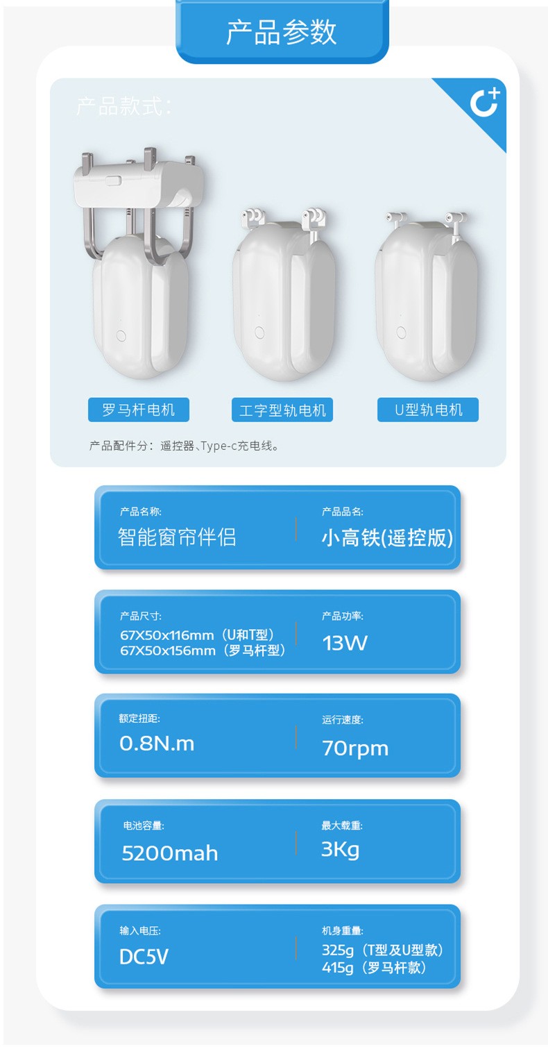 無線窗簾WIFI語音控制神器涂鴉智能電動(dòng)窗簾伴侶羅馬桿窗簾助力器